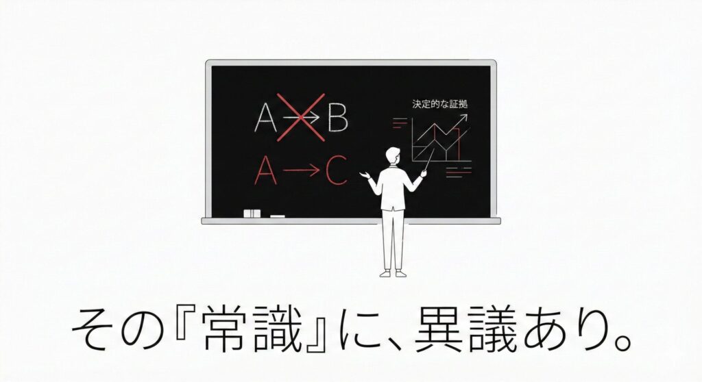 これは、既存の定説(ドグマ)を否定し、新しいパラダイムを提示するスタイルです。