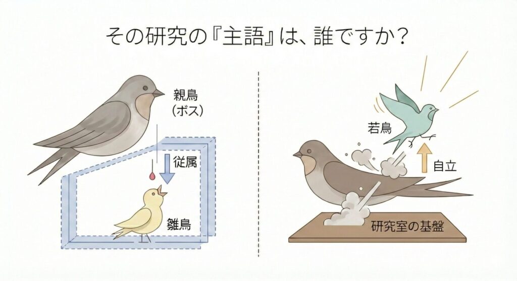 多くの若手研究者は、無意識のうちにボスへの敬意や謙遜から、自分を小さく見せる表現を使ってしまいます。しかし、申請書において謙遜は美徳ではありません。必要なのは、強力な研究環境(ラボ)をあくまで利用可能なリソースと位置づけ、その上で自分が主体的にコントロールしていることを示す「主体性」の演出です。