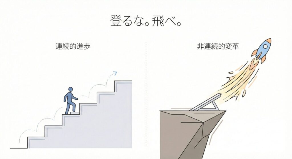 審査員がこの種目で求めているのは、教科書の続きを書くこと(改善)ではありません。教科書そのものを書き換える、あるいは燃やしてしまうような「非連続的な変革」です。
