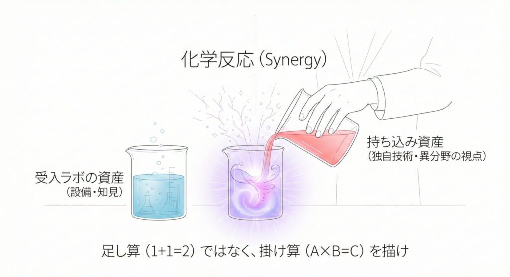 申請書で「〇〇先生の下で学びたい」と書くのは、自分をただの学生(客)だと宣言する自殺行為です。採択される人は、関係性を「教育」ではなく「共同研究」として描きます。ラボの資産とあなたの技術を掛け合わせ、未知のブレイクスルーを起こす化学反応の記述法を解説します。