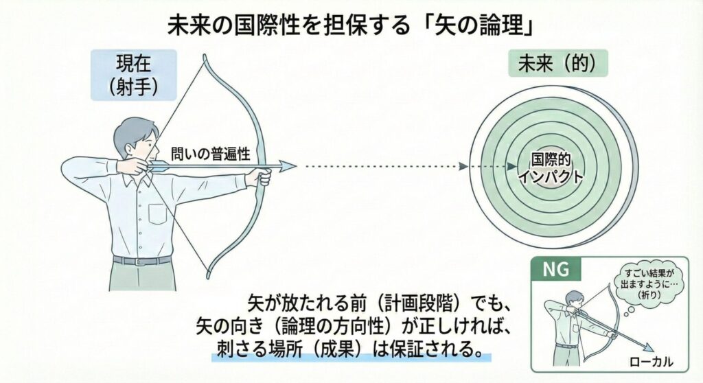 未来の結果を予言する必要はありません。現在設定している問いの質によって、国際性を論理的に保証する方法を解説します。