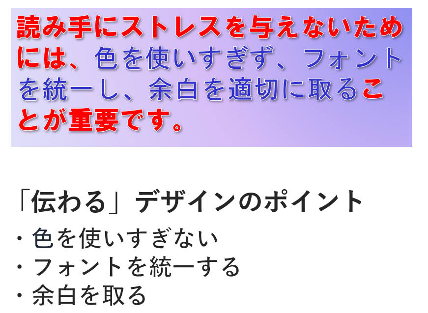 - 配色の型: 誰にでも見やすい色の組み合わせ(例:カラーユニバーサルデザイン)